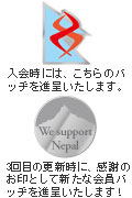 | ・3回目の継続時には会員バッヂを差し上げます。 ・他にも、会員には不定期発行の「会報誌」を差し上げています。 |