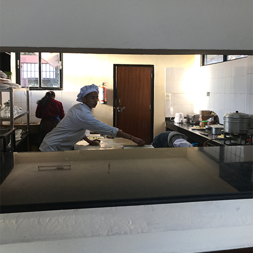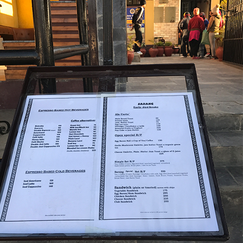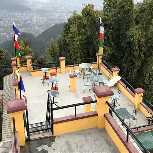 今なお残るネパール地震の影響を吹き飛ばし積極的にお客様をお迎えできるようにリニューアルいたしました。バックショップを移動し、レストラン前面をカフェテラスにしました。本格的なエスプレッソをお楽しみいただけます。バック、小物類は奥入口にオープンショプとしてディスプレイされています。見晴らしの良い屋上には新たにテーブルを配置し、屋上テラスとしました。また、バックパッカーたちがテントを張れるように庭も整備しました。スタッフが笑顔でみなさまをお迎えしています。