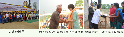 - ・協会採用のマニジョッティ小中学校教師、ミシン講習の講師、支援事業やレストラン建設に協力してくださった方々を表彰し記念品を贈呈。ミシン講習を修了したお母さんたち(39名)へは修了証書と記念品を授与。