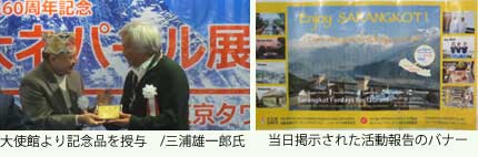 - ・ ネパール大使館が主催する、エベレスト登頂60周年を記念する大ネパール展が東京タワーで開催され、当協会も協賛してネパールでの支援活動を紹介。当日は三浦雄一郎氏も駆けつけました。