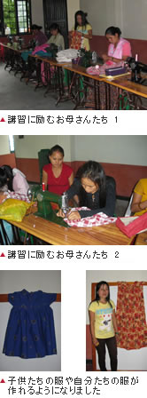 現金創出の手段として衣服やバック、小物類などが作れるようになるために、ミシン講習が実施されています。
