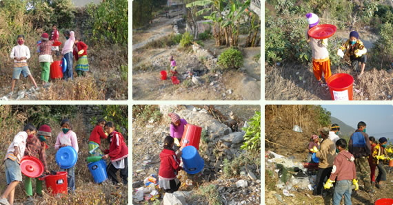 組織された清掃隊が、村をきれいにしていくことで、